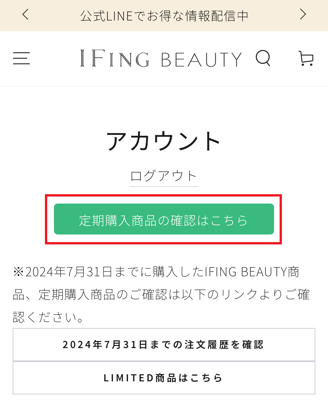 マイページ内の「定期購入商品の確認はこちら」を選択してください。